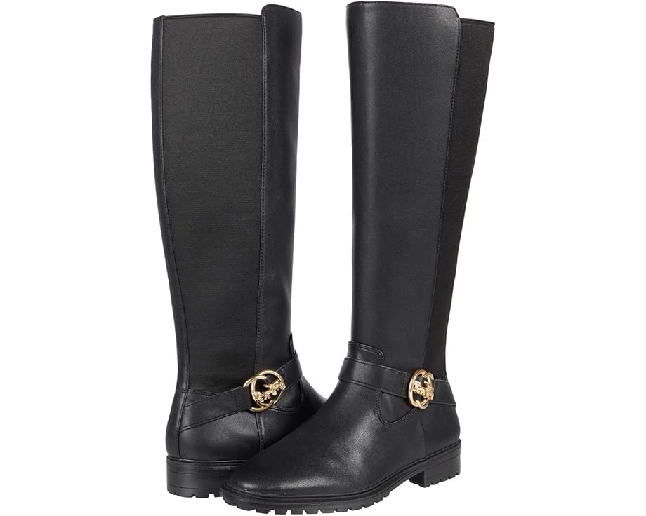 Please Note: COACH™ items cannot be shipped to military addresses (APO or FPO) and addresses in Hawaii, the Virgin Islands, Guam or any other locations outside of the continental US.SKU: #9482059Smooth COACH™ Farrah Leather Boot featuring a breathable fabric and man-made lining with lightly cushioned, stationed insole.Inner zip closure and hardware detail at sides.Round toe and block heel.Rugged synthetic sole.Imported.Product measurements were taken using size 7.5, width B – Medium. Please note that measurements may vary by size.Measurements: