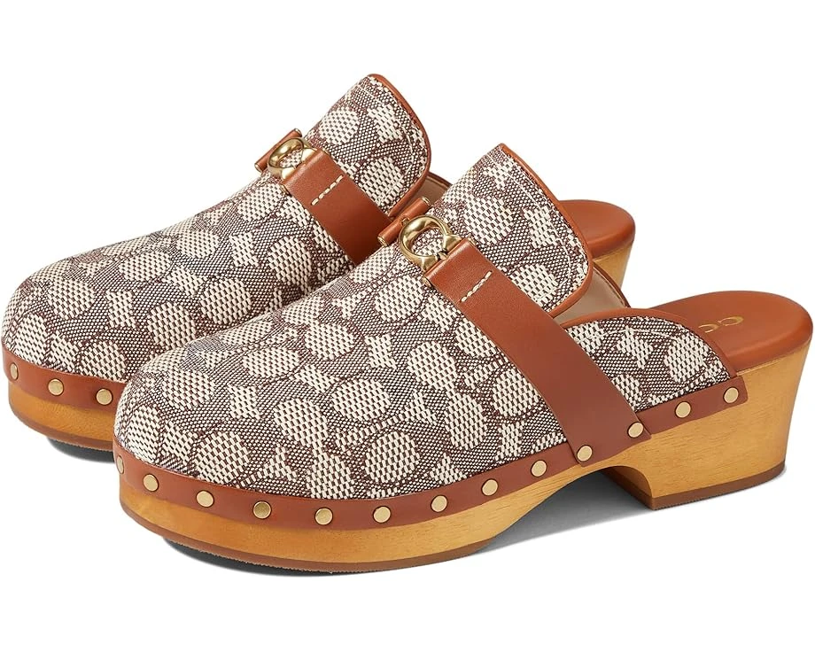 Please Note: COACH™ items cannot be shipped to military addresses (APO or FPO) and addresses in Hawaii, the Virgin Islands, Guam or any other locations outside of the continental US.SKU: #9830190Stand out from the crowd with ease in the COACH® Finlay Textured Jacquard Clogs. Slide on style. Branded design all over uppers. Strap across top of foot with branded hardware. Studded detailing along top of platform. Round toe silhouette. Wood design platforms and heels. Leather and textile uppers. Synthetic linings, insoles, and outsoles. Made in Brazil. Product measurements were taken using size 9, width B – Medium. Please note that measurements may vary by size.Weight of footwear is based on a single item, not a pair.Measurements: