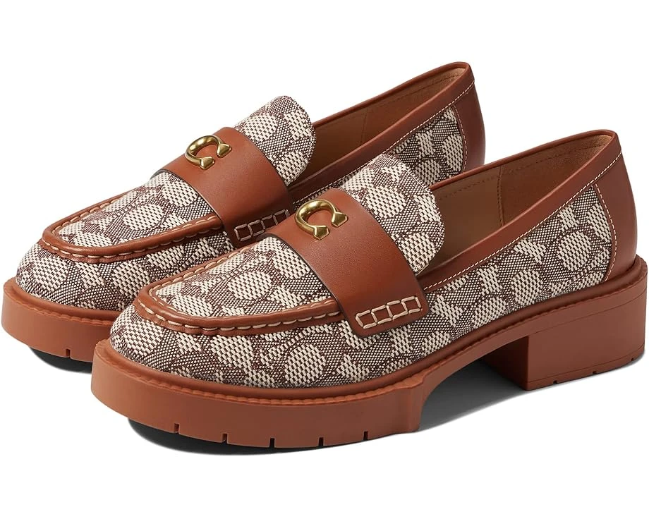 Please Note: COACH™ items cannot be shipped to military addresses (APO or FPO) and addresses in Hawaii, the Virgin Islands, Guam or any other locations outside of the continental US.SKU: #9830206Stay on top of the trends by opting for the elegant and chic COACH® Leah Textured Jacquard Loafers.Leather and textile upper. Synthetic and leather lining and insole. Slip-on style. Classic moc toe and block heel. Allover brand’s signature print. Goldtone metallic hardware detail on the vamp. Synthetic outsole with high traction and durability. Imported. Product measurements were taken using size 9, width B – Medium. Please note that measurements may vary by size.Measurements: