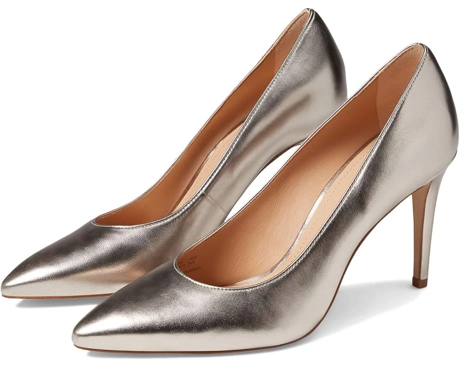 Please Note: COACH™ items cannot be shipped to military addresses (APO or FPO) and addresses in Hawaii, the Virgin Islands, Guam or any other locations outside of the continental US.SKU: #9830201Featuring an allover metallic finish, the COACH® Skyler Metallic Leather Pump looks glamorous.Metallic leather upper.Leather lining and footbed.Slip-on style.Pointed toe.Stiletto high heel.Metallic branding accent on the back.Leather outsole.Made in Brazil.Weight of footwear is based on a single item, not a pair.Measurements: